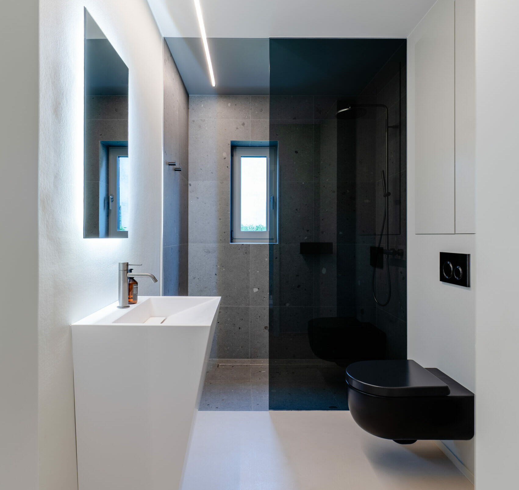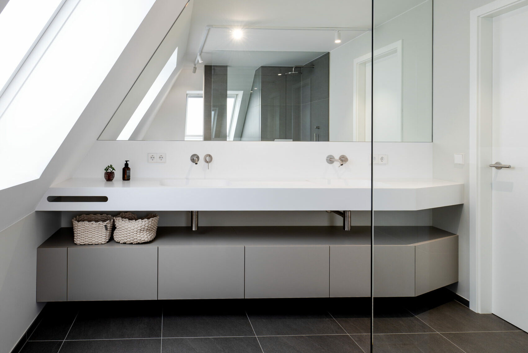 Dans cette réalisation, nos client souhaitaient un ensemble conceptuel épuré et moderne pour leurs salle de bain parentale ainsi que pour la salle de douche des invités.